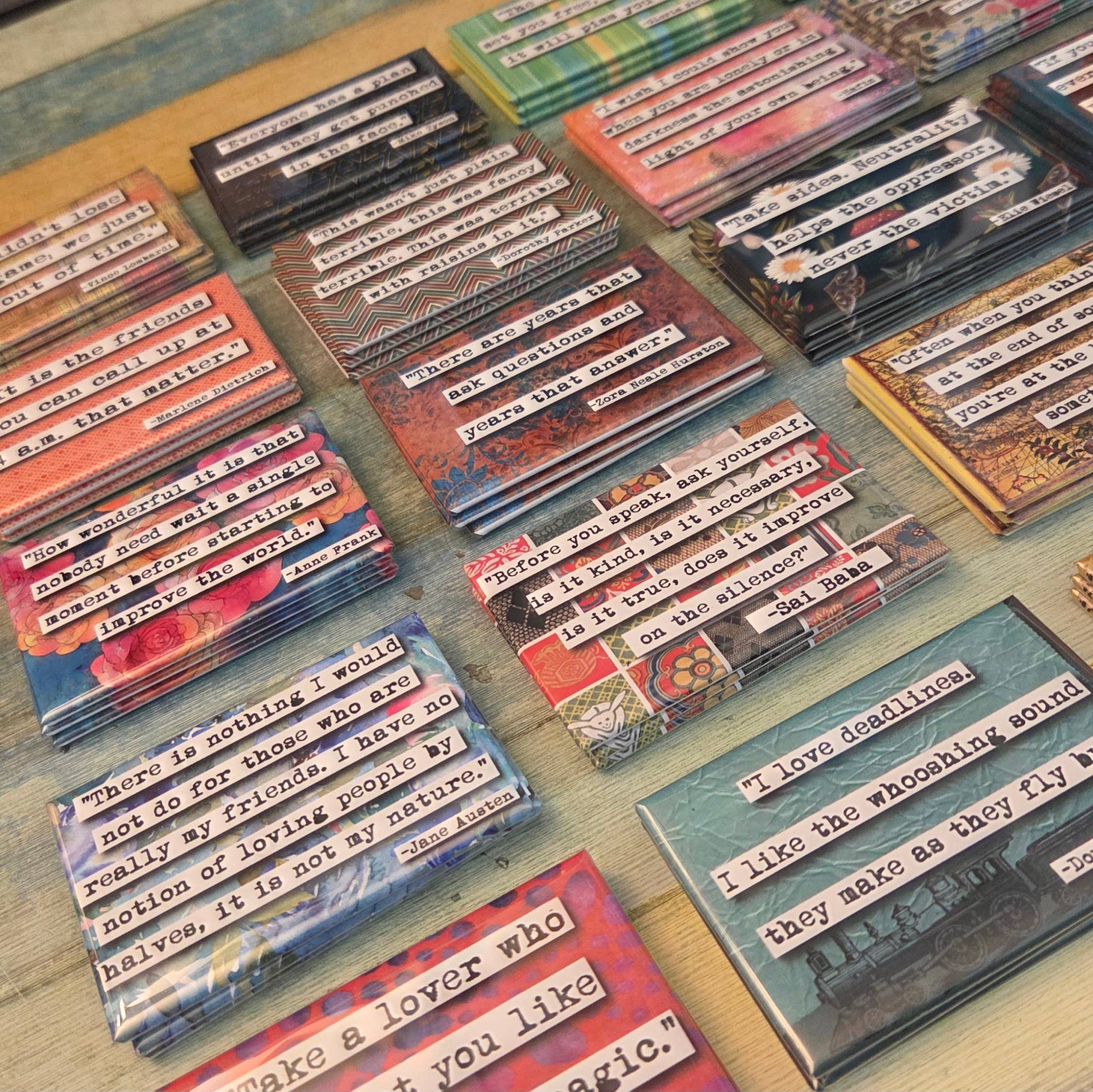 ChicalooKate- Dororthy Parker "Terrible With Raisins" Quote Magnet Facts: -2 (h) x 3 (w) inches. -Weight lb: 0.08. -Mylar (plastic) cover. -Flat magnet covers the entire back and is very strong, Made in Ann Arbor.
